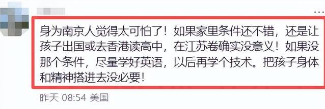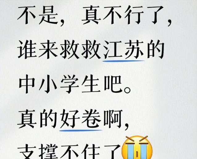 还有家长直言:江苏的教育内卷,救不了!为啥?因为江浙沪人才太多,竞争从娃娃抓起。家长们都盯着985、211,甚至世界排名前50的大学,恨不得从小学就把孩子往这条路上推。卷,已经成了习惯。